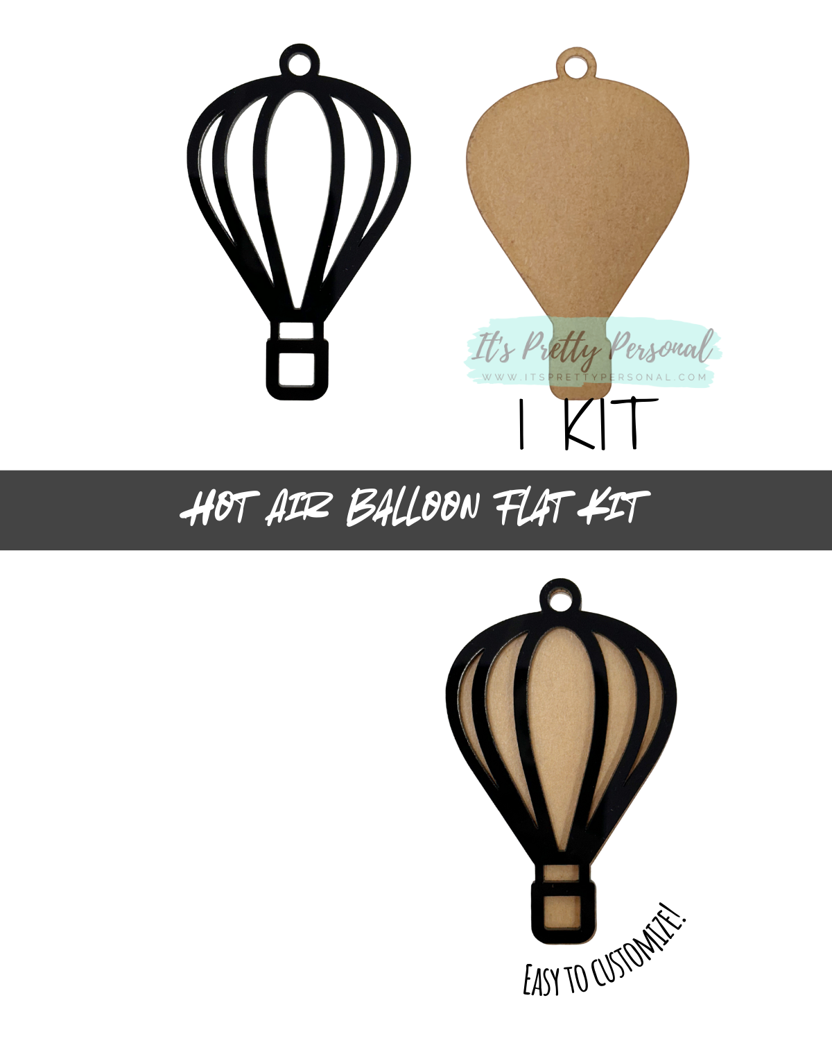 Create meaningful, eye-catching designs with our Hot Air Balloon Acrylic Kit, featuring a clear acrylic backing paired with a black outline overlay.
