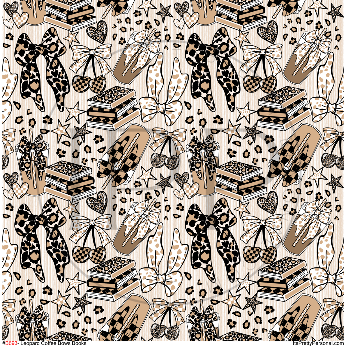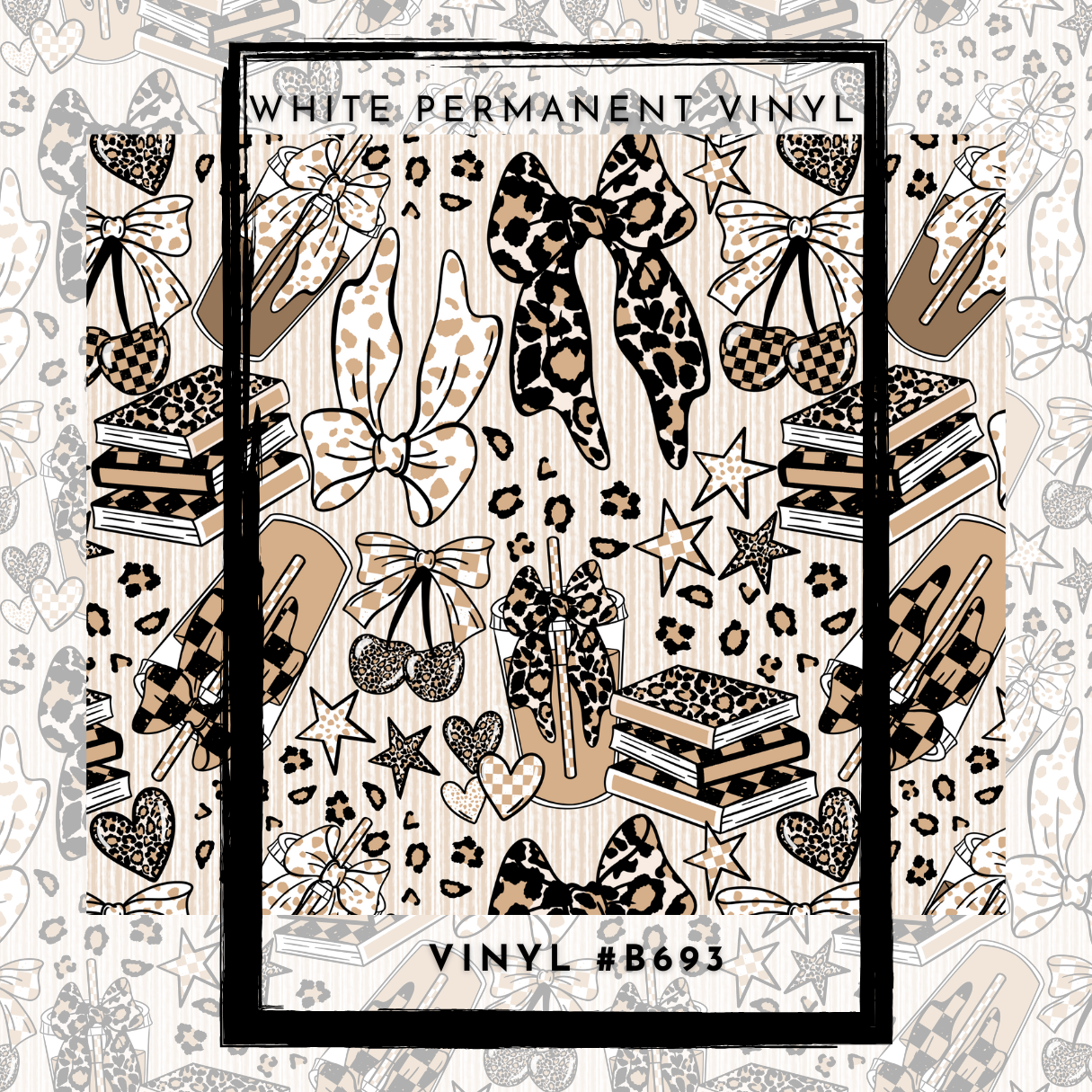 #B693- Leopard Coffee Books Bows -12x12 Pattern Vinyl