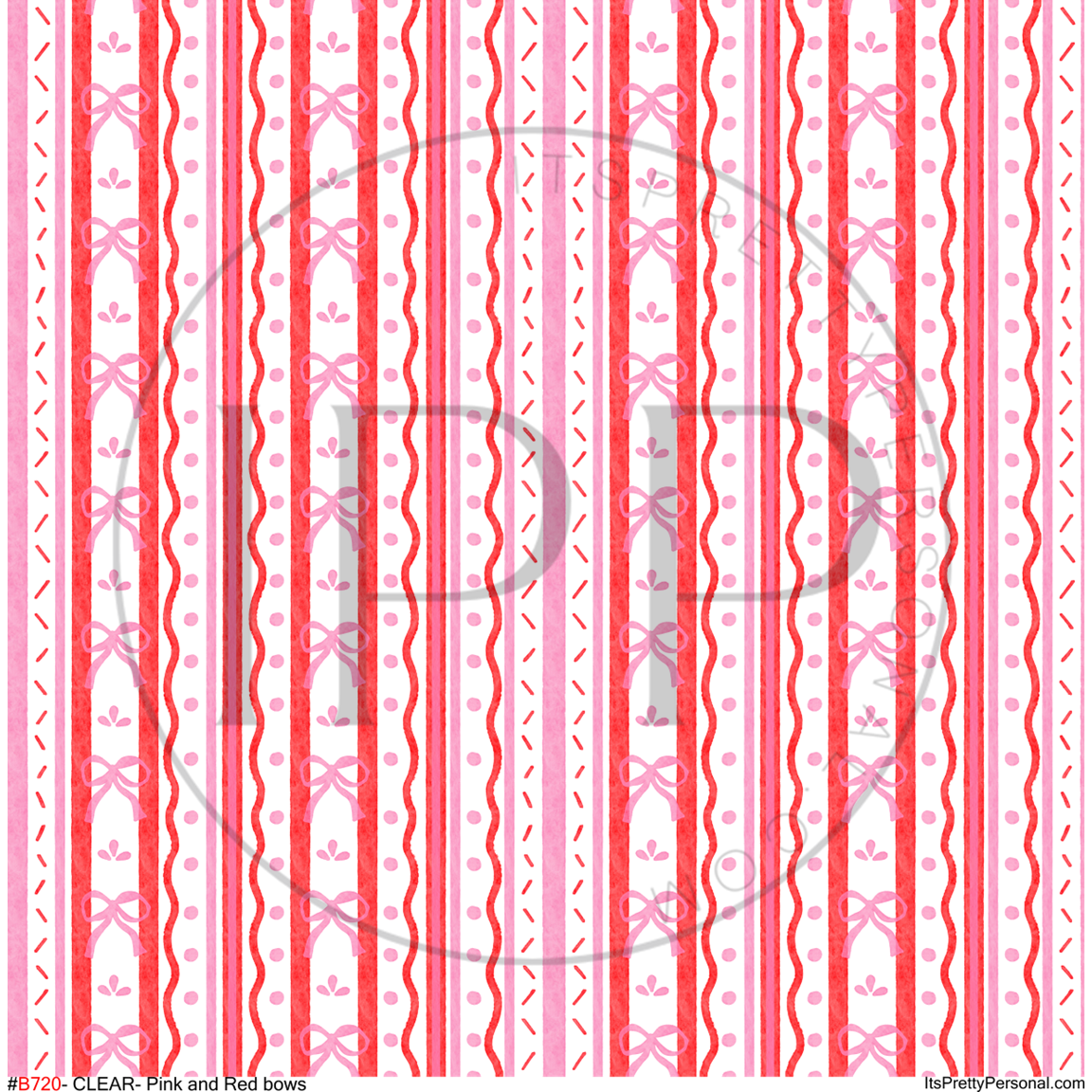 #B720- CLEAR Pink Red Girly Bows Valentines Day -12x12 Pattern Vinyl