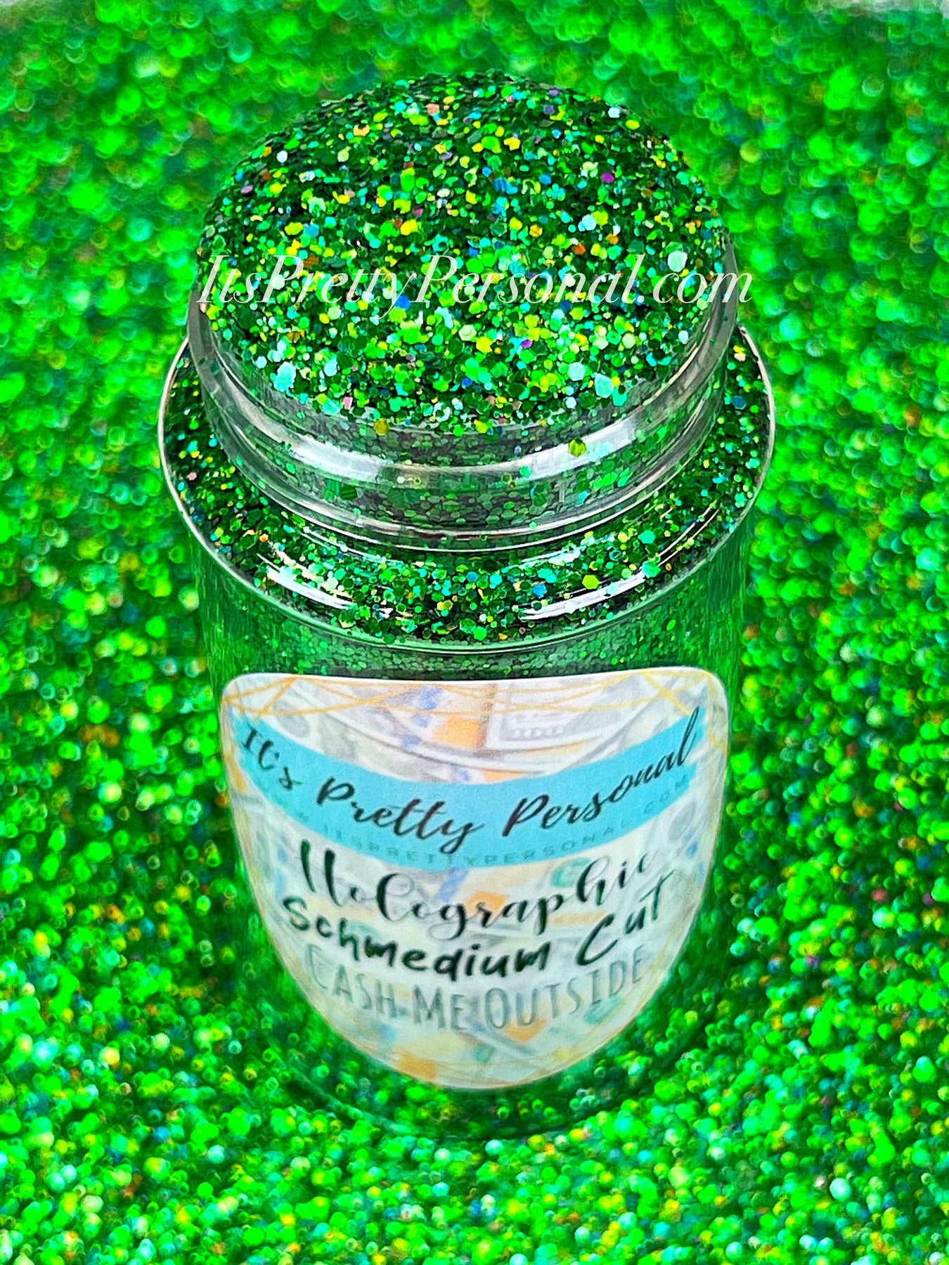 SCHMedium Cut- "Cash Me Outside" -Green Holographic Glitter