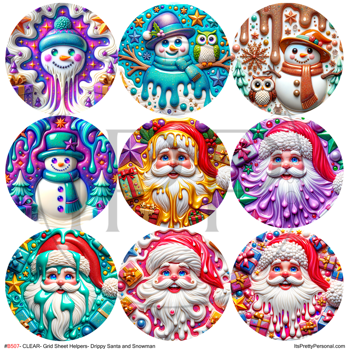 #B507-CLEAR Small Scale Ornament Grid Helper-Drippy Santa Snowman- 12x12 CLEAR Pattern Vinyl