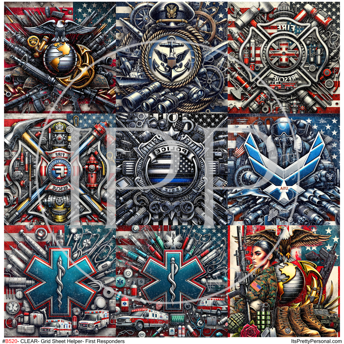 #B520-CLEAR Small Scale Ornament Grid Helper-First Responders- 12x12 CLEAR Pattern Vinyl