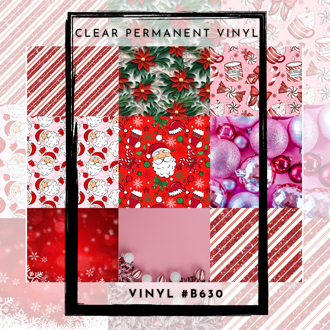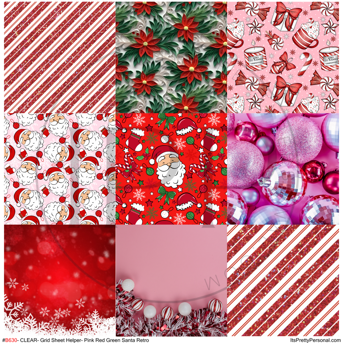 #B630-CLEAR Small Scale Ornament Grid Helper-Pink Red Santa Retro-12x12 CLEAR Pattern Vinyl