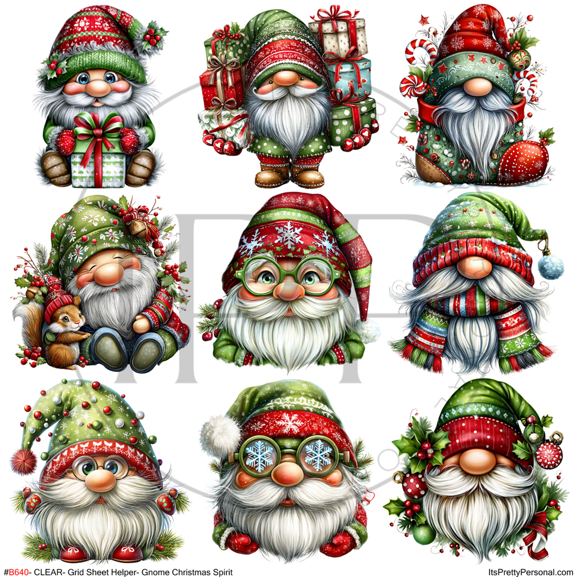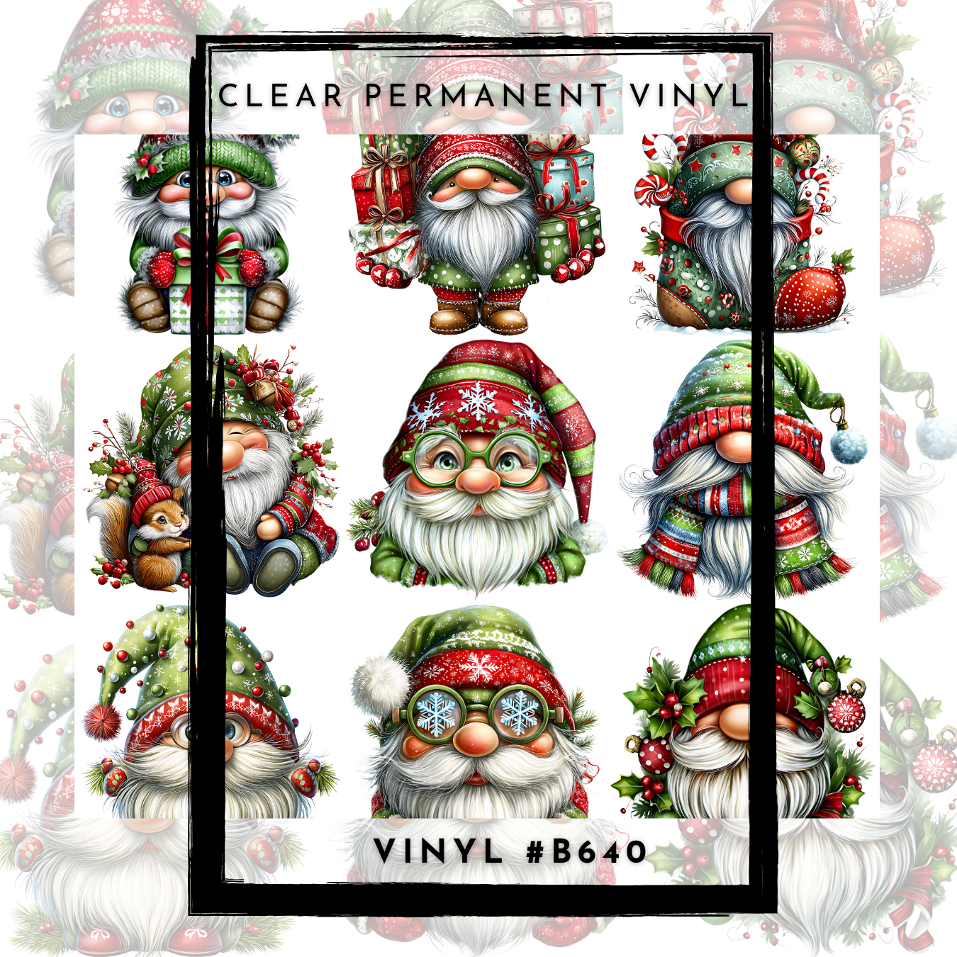 #B640-CLEAR Small Scale Ornament Grid Helper-Gnome Christmas Classic-12x12 CLEAR Pattern Vinyl