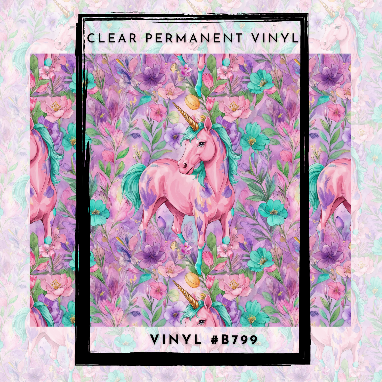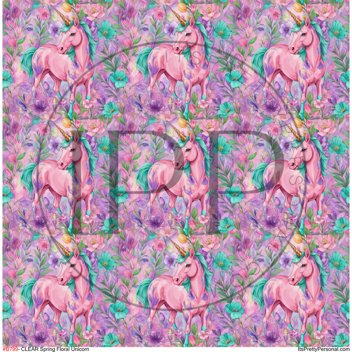 #B799- CLEAR Spring Floral Unicorn-12x12 Pattern Vinyl