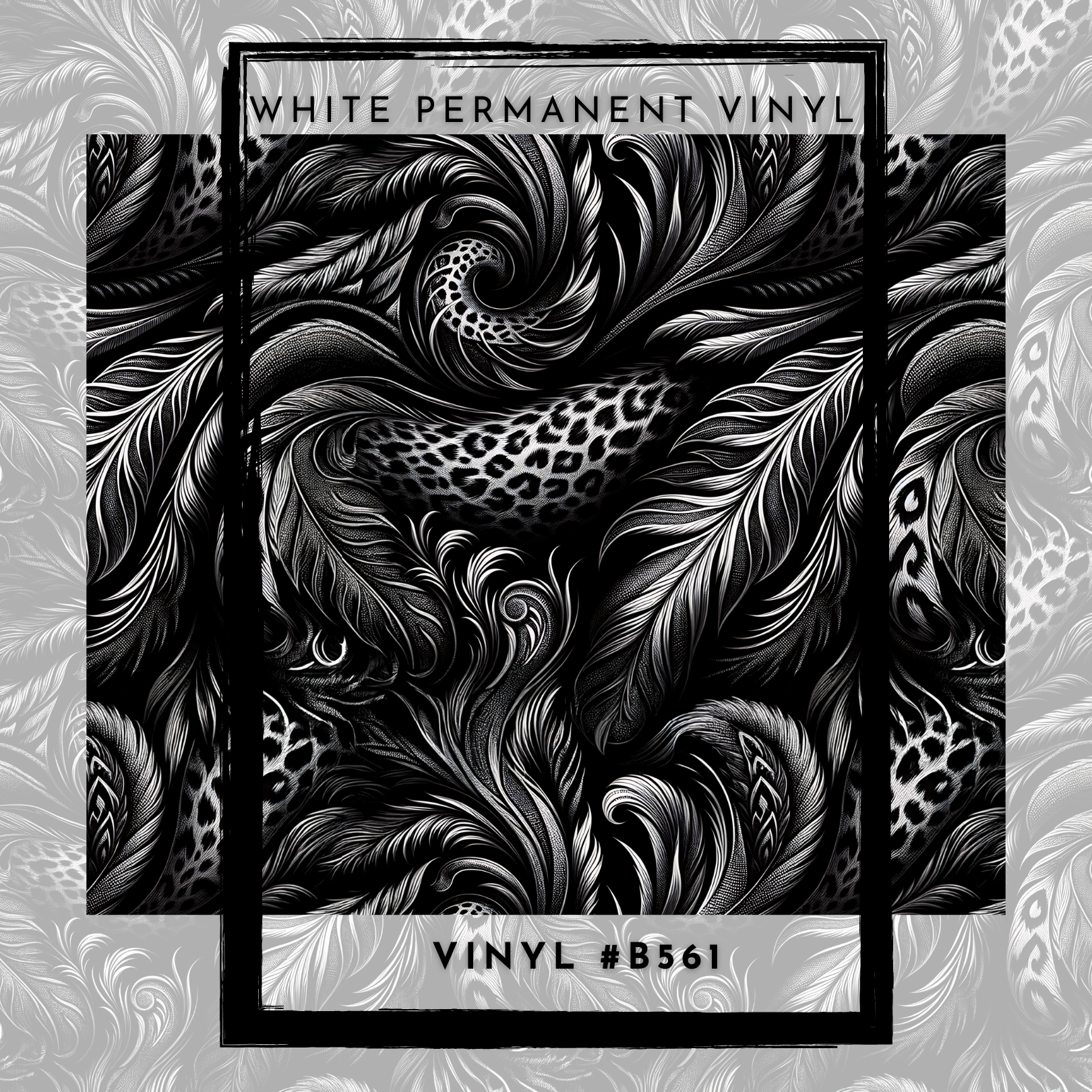 #B561- Leopard Floral Black Gray- 12x12 Pattern Vinyl