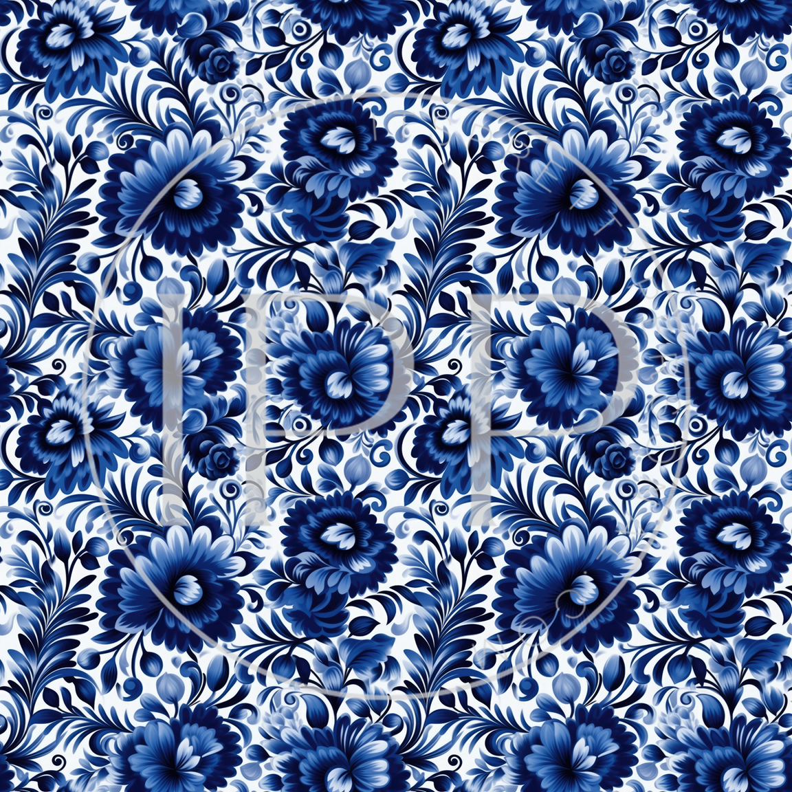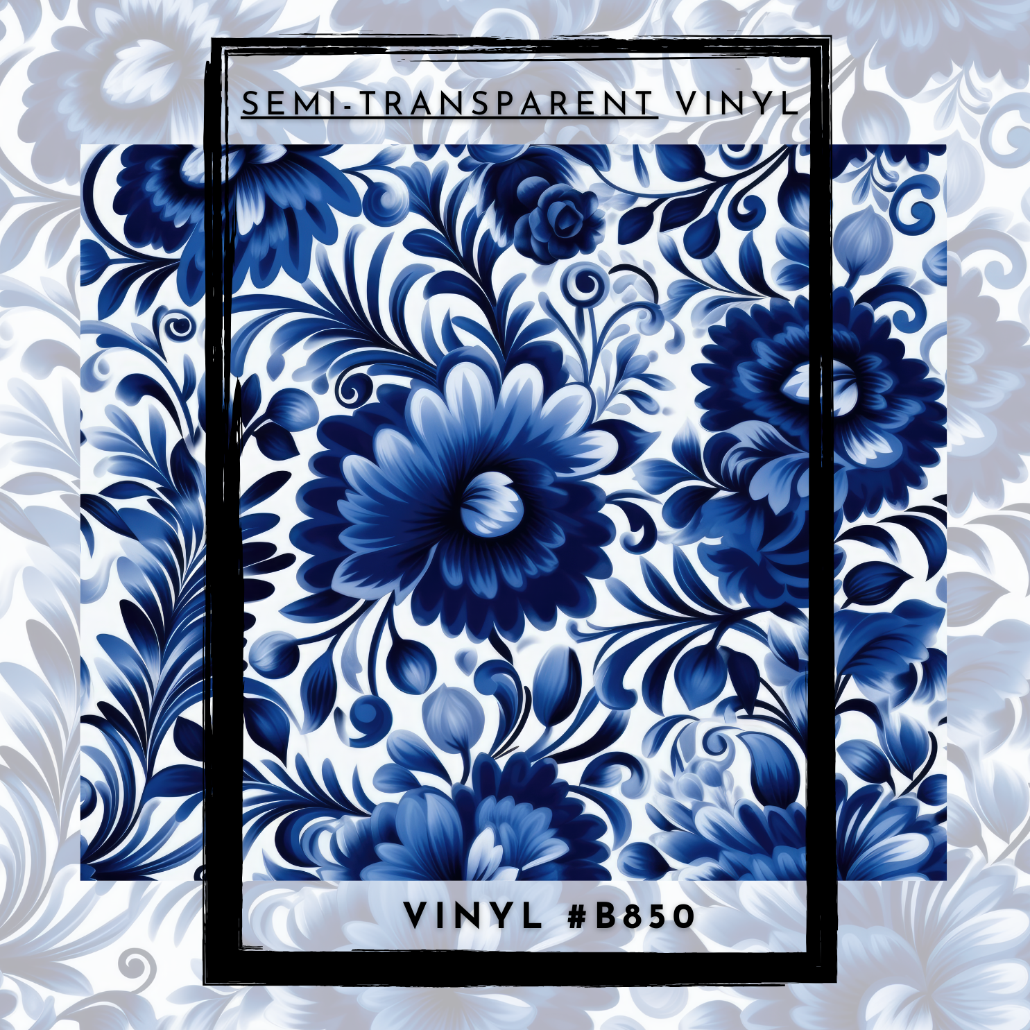 #B850- SEMI-TRANSPARENT- Blue Floral Tea Party-12x12 Pattern Vinyl