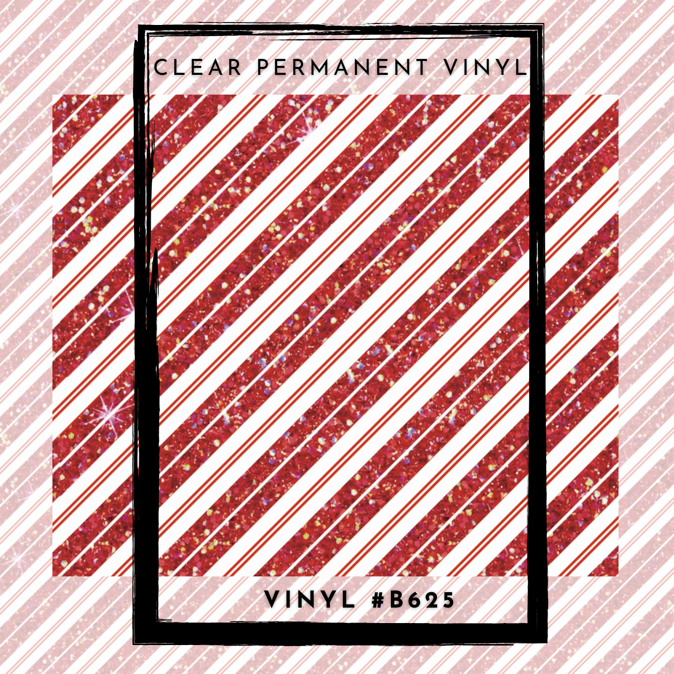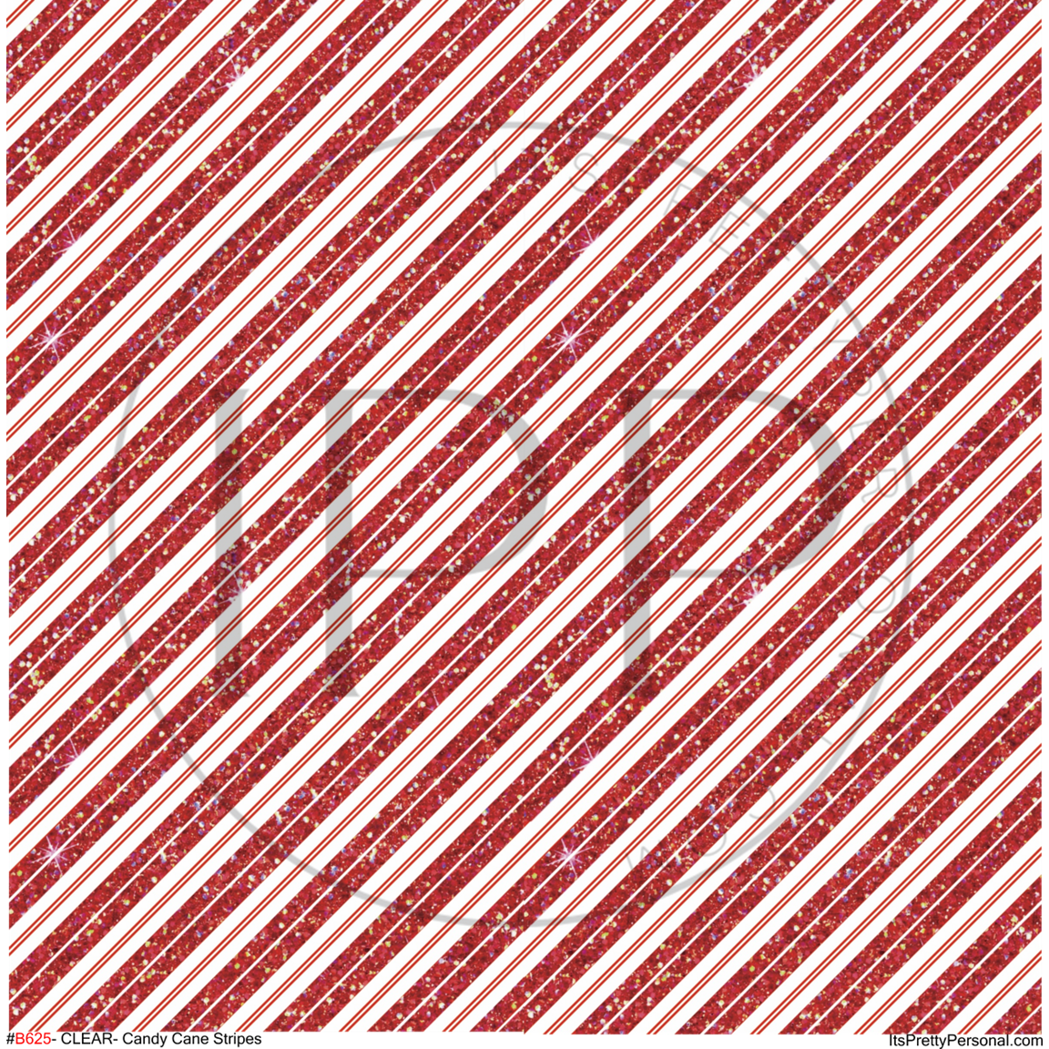 #B625- CLEAR Candy Cane Stripes Glittered- 12x12 Pattern Vinyl
