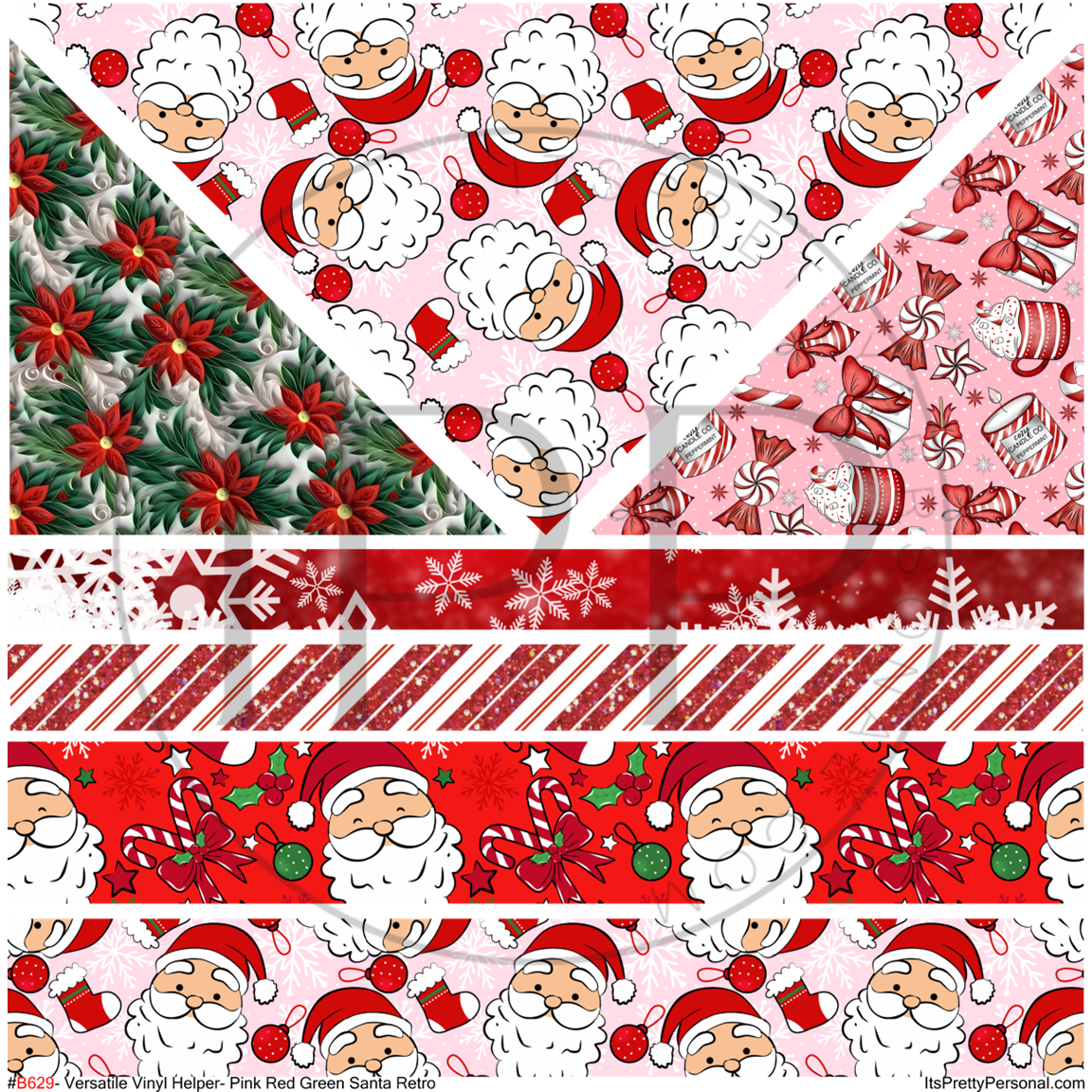 #B629-Versatile Vinyl Helper-Pink Red Green Santa Retro - 12x12 Pattern Vinyl