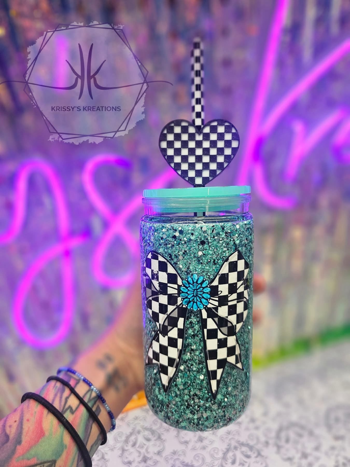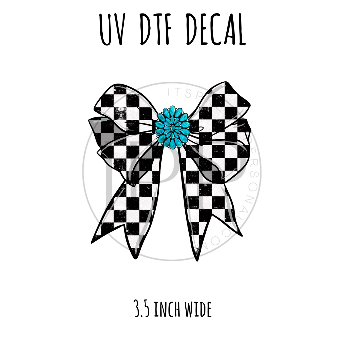 #342 Y'allternative Western Turquoise Checkered - 3.5 inch wide UV DTF decal