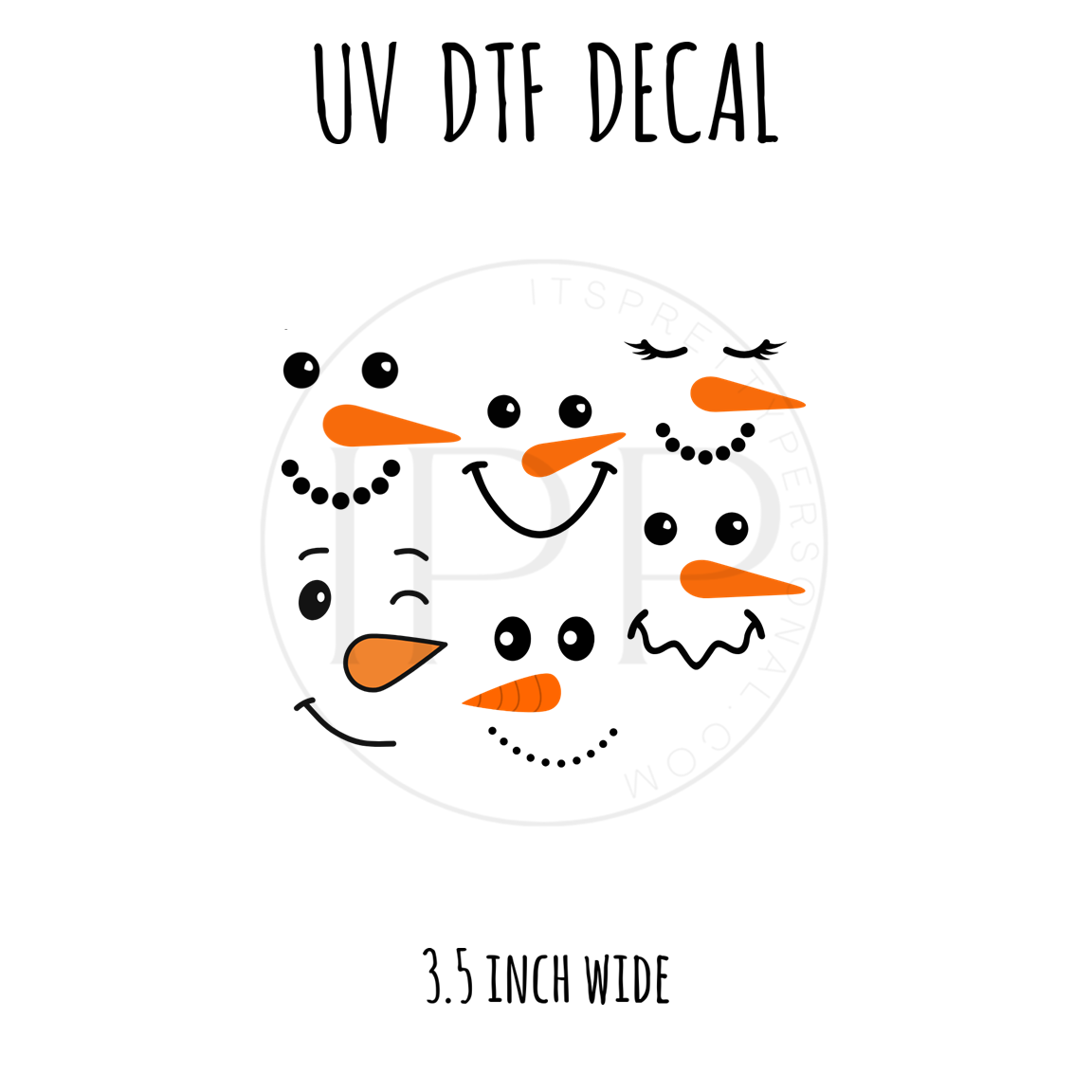 #638 Snow Man Faces- 3.5 inch wide UV DTF decal (Each face on average 1" wide)