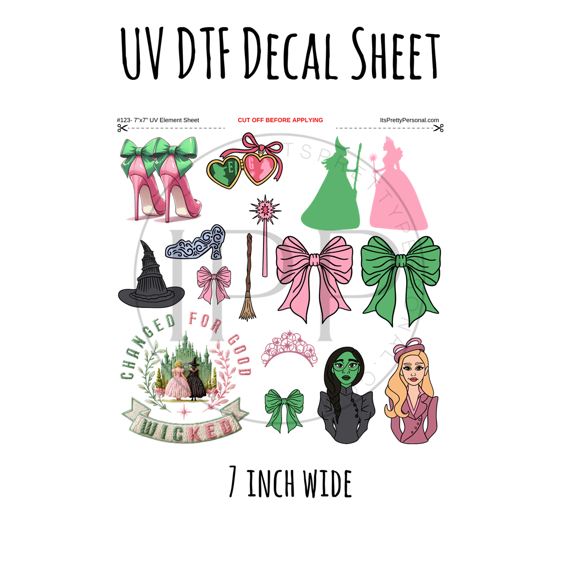 7"x7"- #123- Pink and Green Wicked - UV DTF Decal SHEET