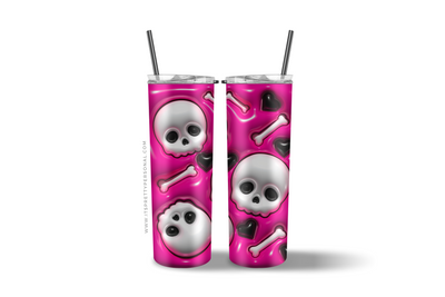 #319 WHITE- 20oz -3D Puff Pink Skull 9.4" x 8" Pattern Vinyl Wrap