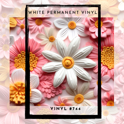 #745 WHITE- 20oz -3D Flowers 9.4" x 8" Pattern Vinyl Wrap