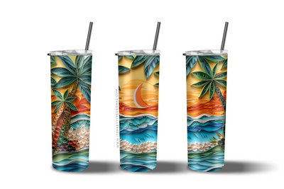 #748 CLEAR- 20oz -3D Beach 9.4" x 8" Pattern Vinyl Wrap