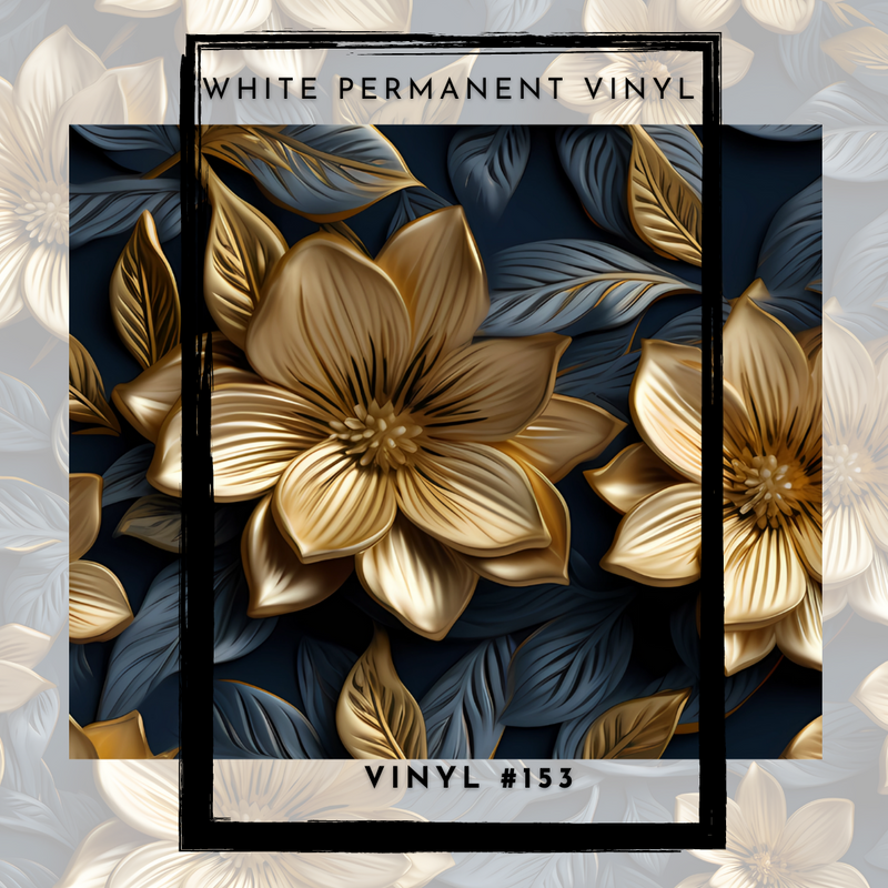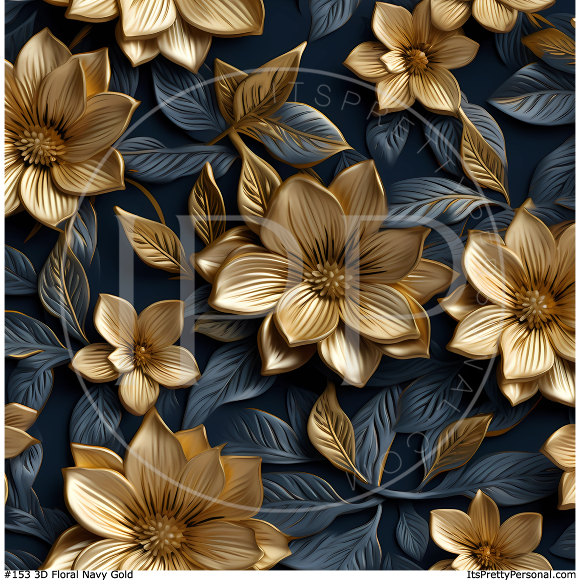 #153 3D Flowers Gold Navy 12x12 Pattern Vinyl