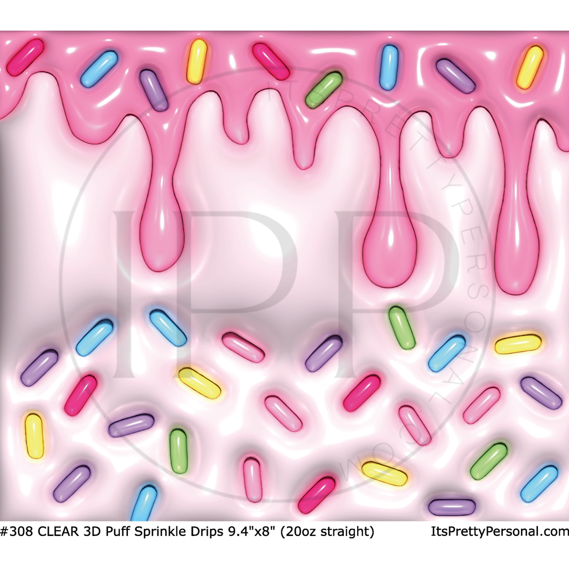 #308 CLEAR- 20oz -3D Puff Sprinkle Drip 9.4" x 8" Pattern Vinyl Wrap