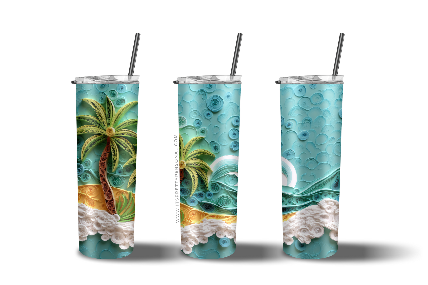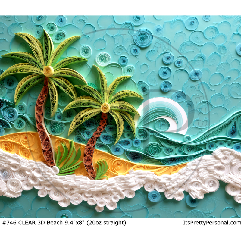 #746 CLEAR- 20oz -3D Beach 9.4" x 8" Pattern Vinyl Wrap