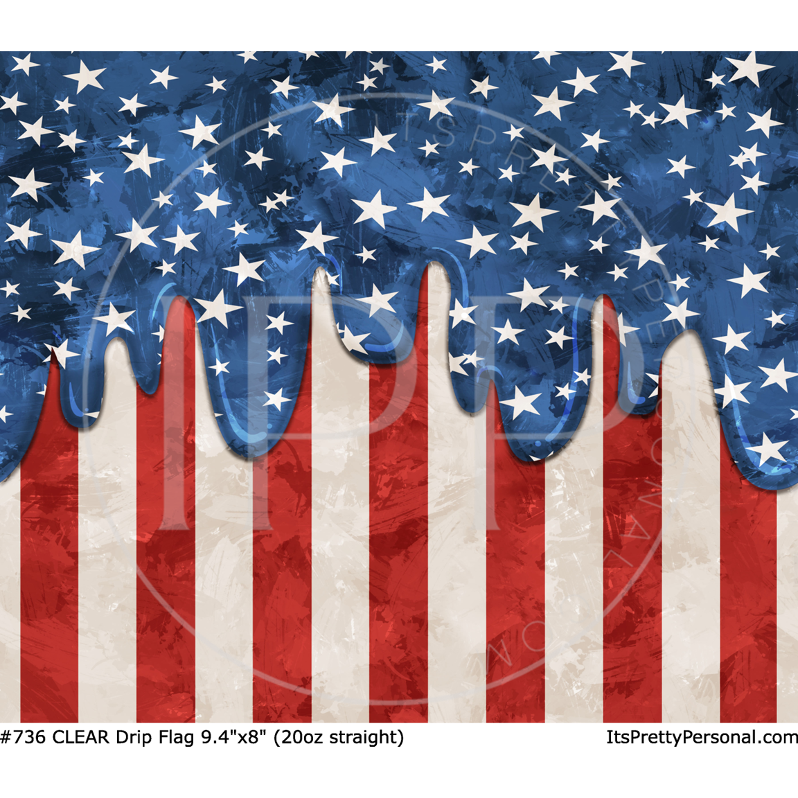 #736 CLEAR- 20oz -Flag Drip 9.4" x 8" Pattern Vinyl Wrap