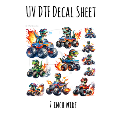 7"x7"- #68-Dino Monster Trucks- UV DTF Decal SHEET
