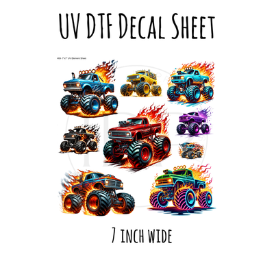7"x7"- #69- Monster Trucks- UV DTF Decal SHEET