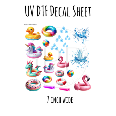 7"x7"- #71- Pool Floats Summer - UV DTF Decal SHEET