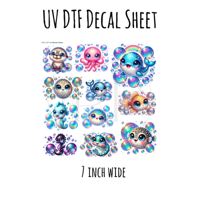 7"x7"- #72- Sea Animals Bubbles - UV DTF Decal SHEET