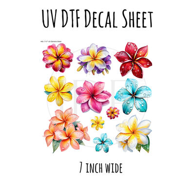 7"x7"- #60-Pulmeria Flowers - UV DTF Decal SHEET