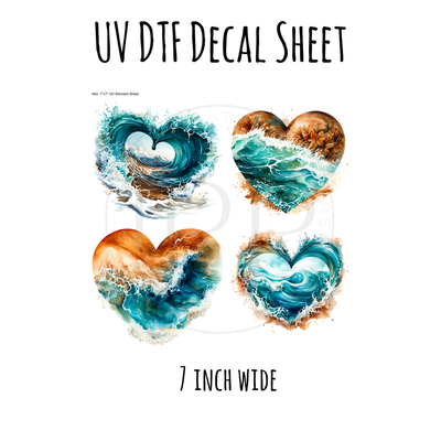 7"x7"- #62-Summer Beach Hearts- UV DTF Decal SHEET