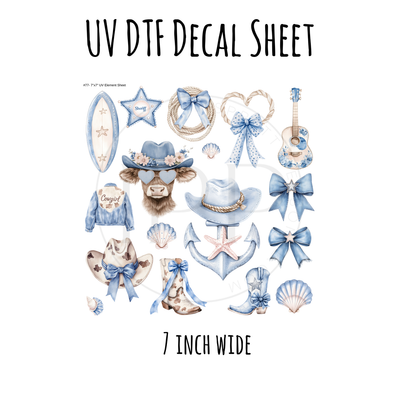7"x7"- #77-Nautical Coastal Cowgirl- UV DTF Decal SHEET