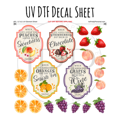 11"x11"- #81-Jar Labels Summer Fruit- UV DTF Decal SHEET
