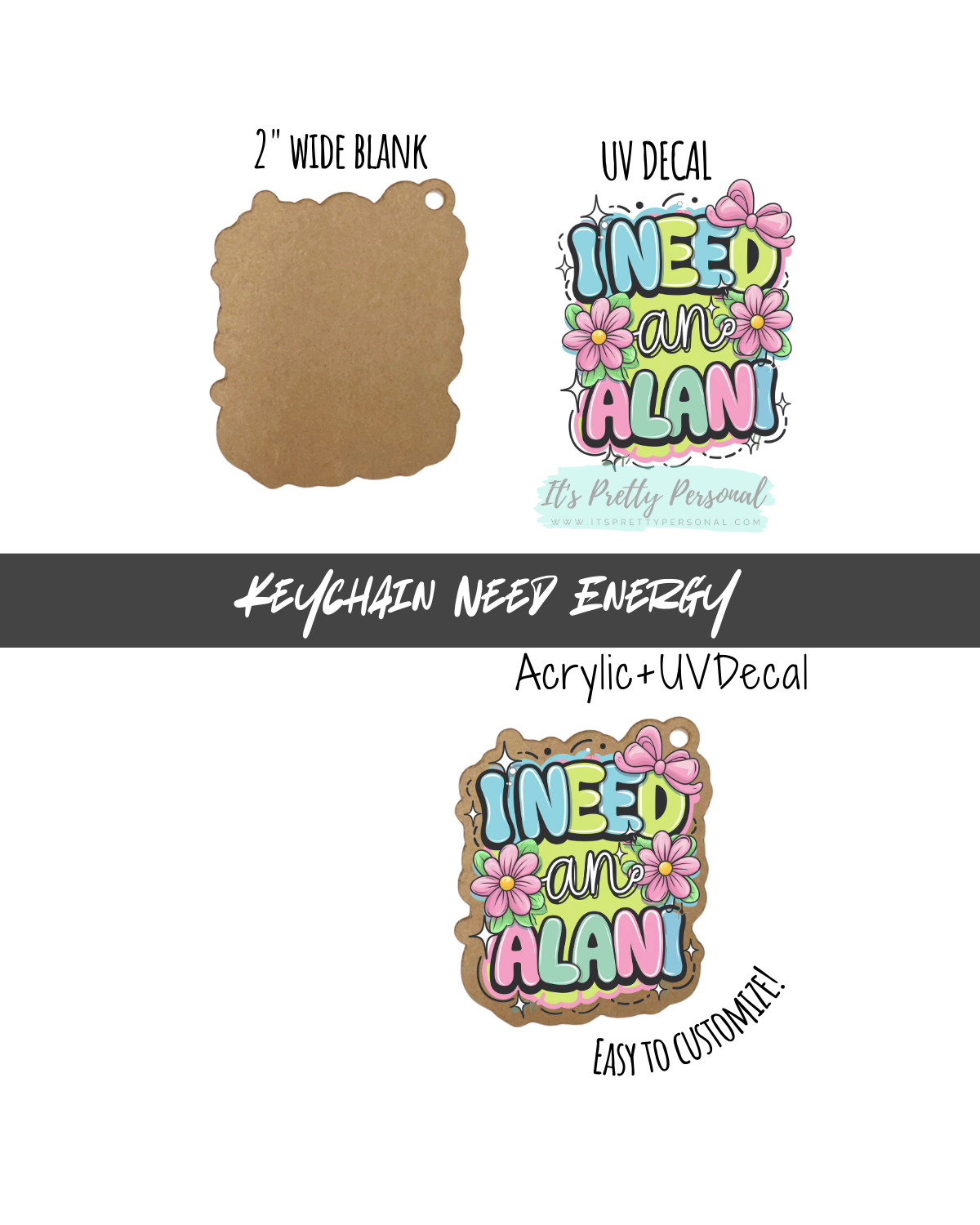 KEYCHAIN KIT- "NEED ENERGY"- UV DTF + Acrylic Blank
