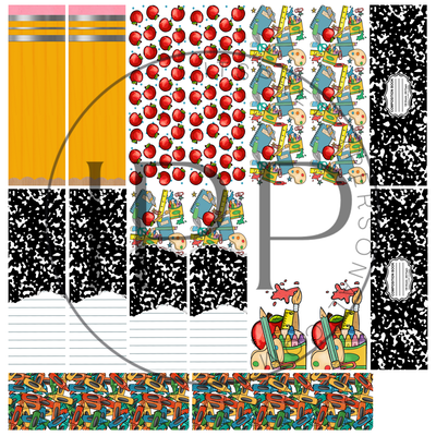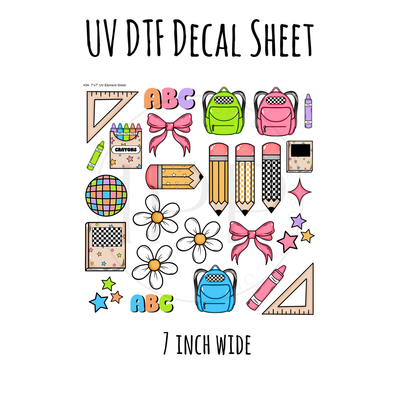 7"x7"- #34-School Supplies - UV DTF Decal SHEET (Cerra Creates)