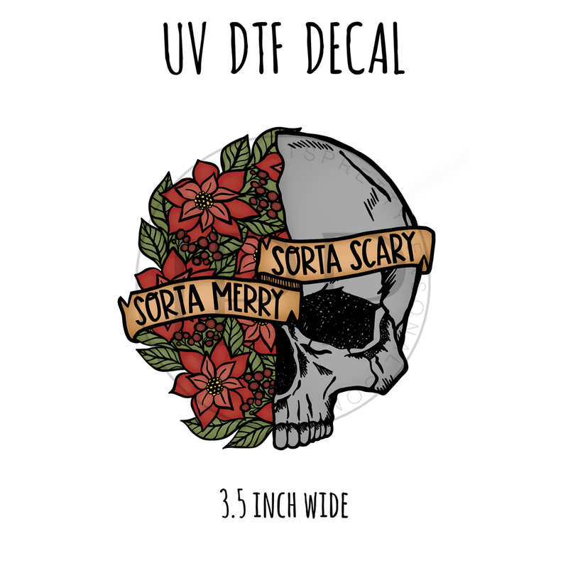 #102-Sorta Merry Sorta Scary- 3.5 inch wide UV DTF decal
