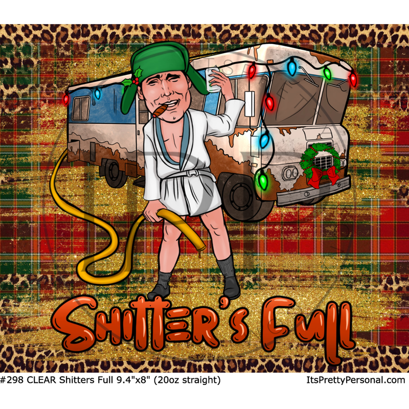 #298 CLEAR 20oz- Classic Christmas-Shitters Full- 9.4" x 8" Pattern Vinyl Wrap