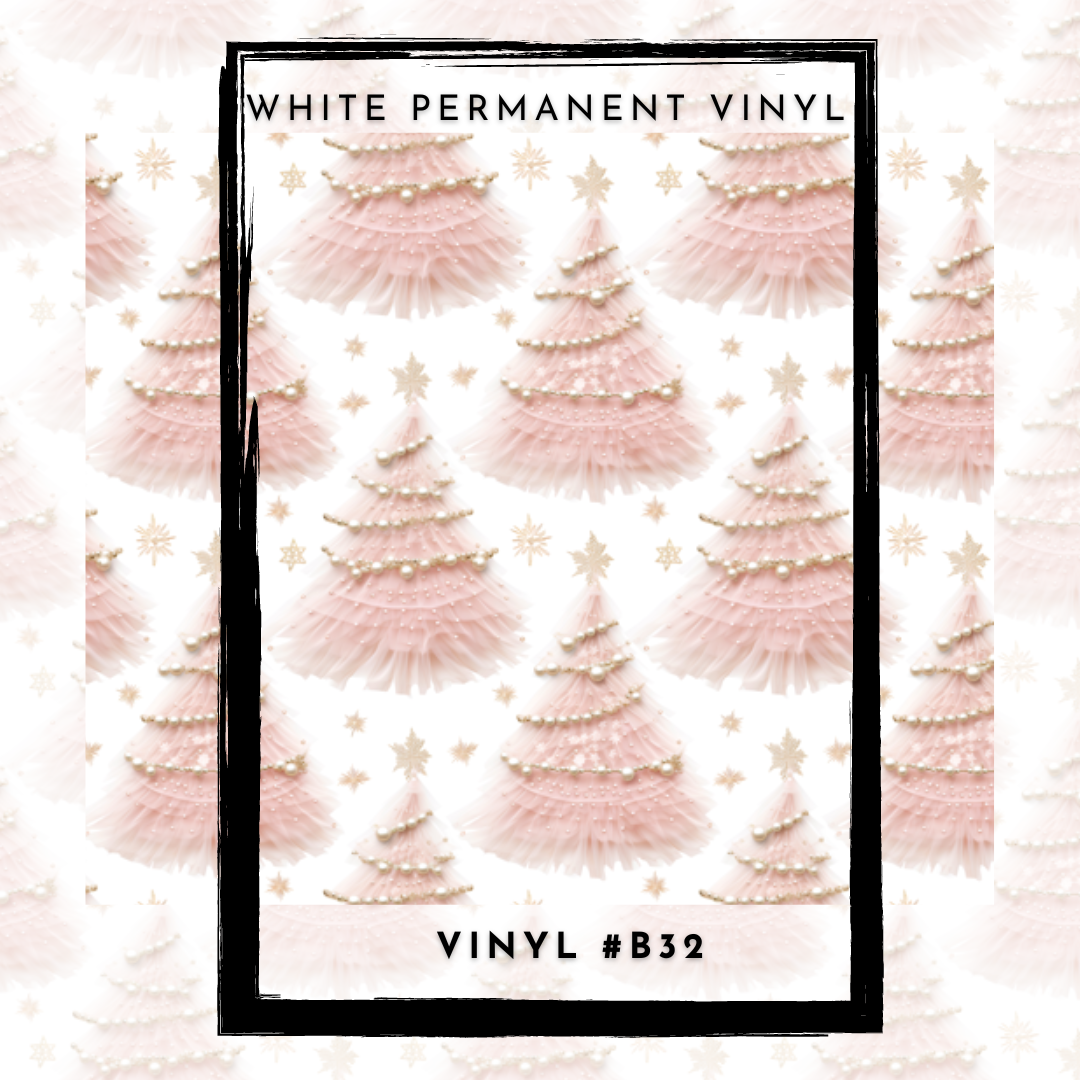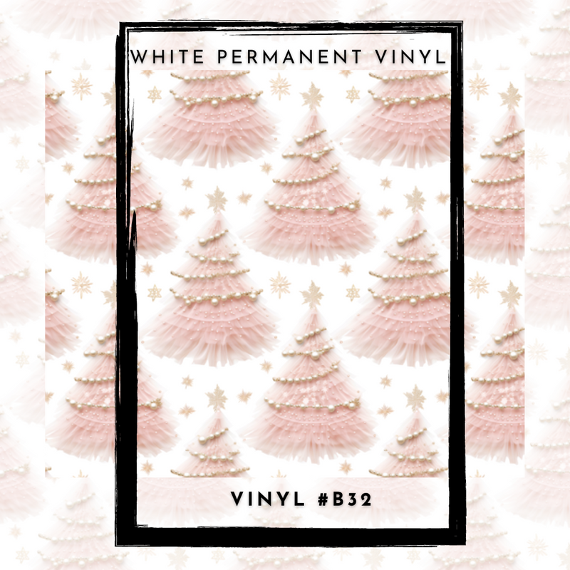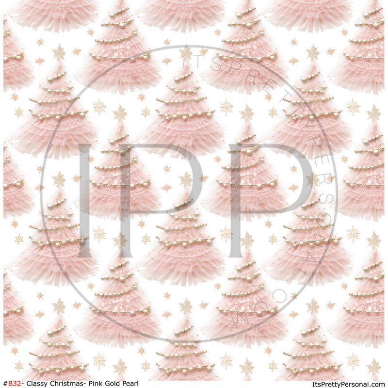 #B32-Classic Christmas Gold & Pink Pearl Christmas Trees- 12x12 Pattern Vinyl