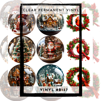 #B139- CLEAR Small Scale Ornament Grid Helper-Snow globe Snowflakes-12x12 CLEAR Pattern Vinyl