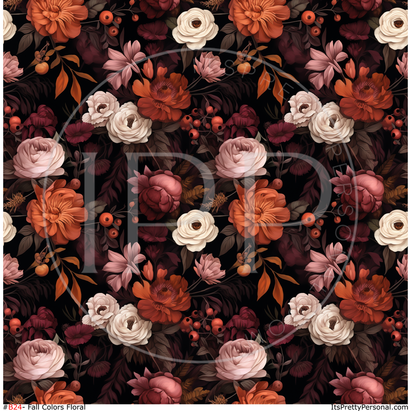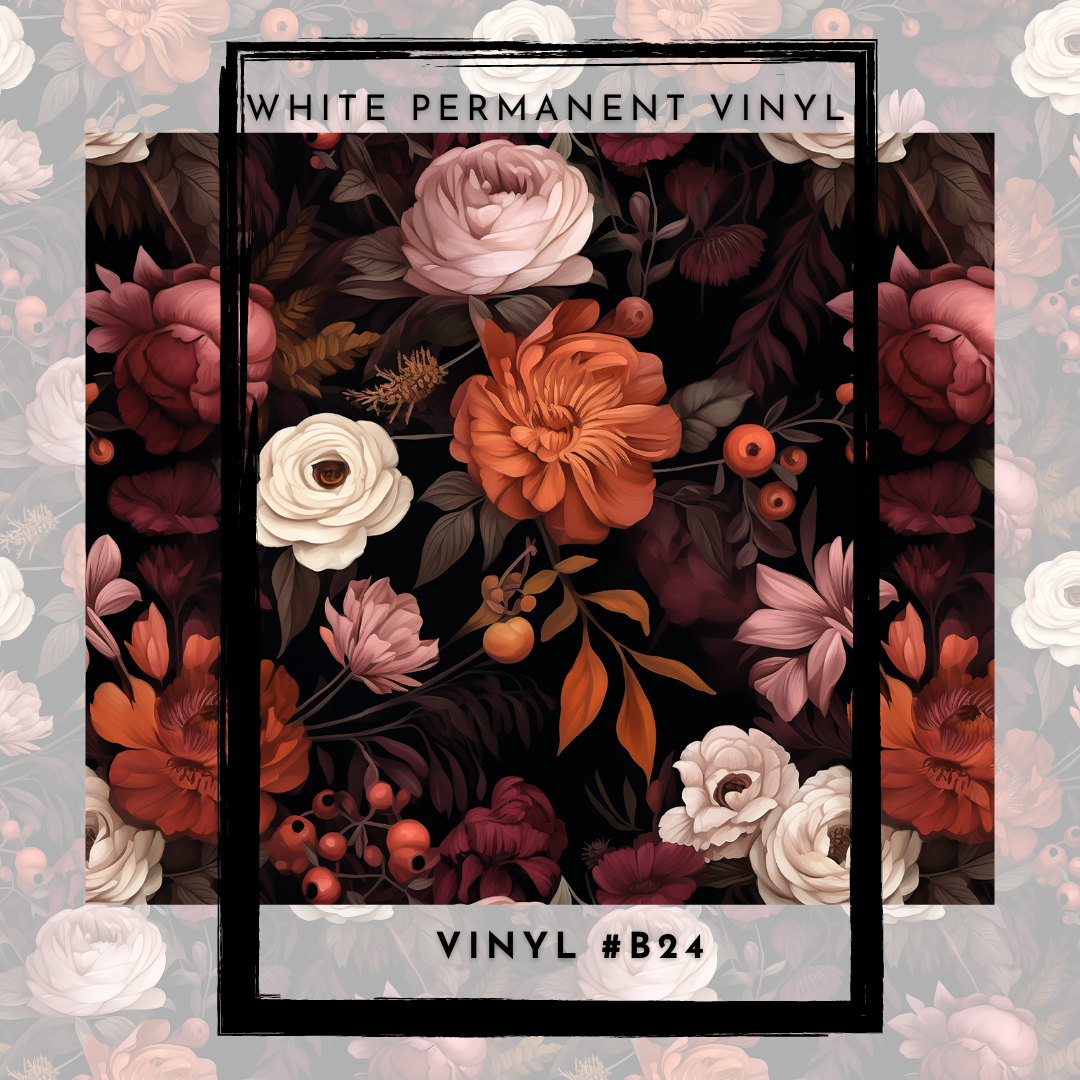 #B24- Deep Plum Orange Floral - 12x12 Pattern Vinyl