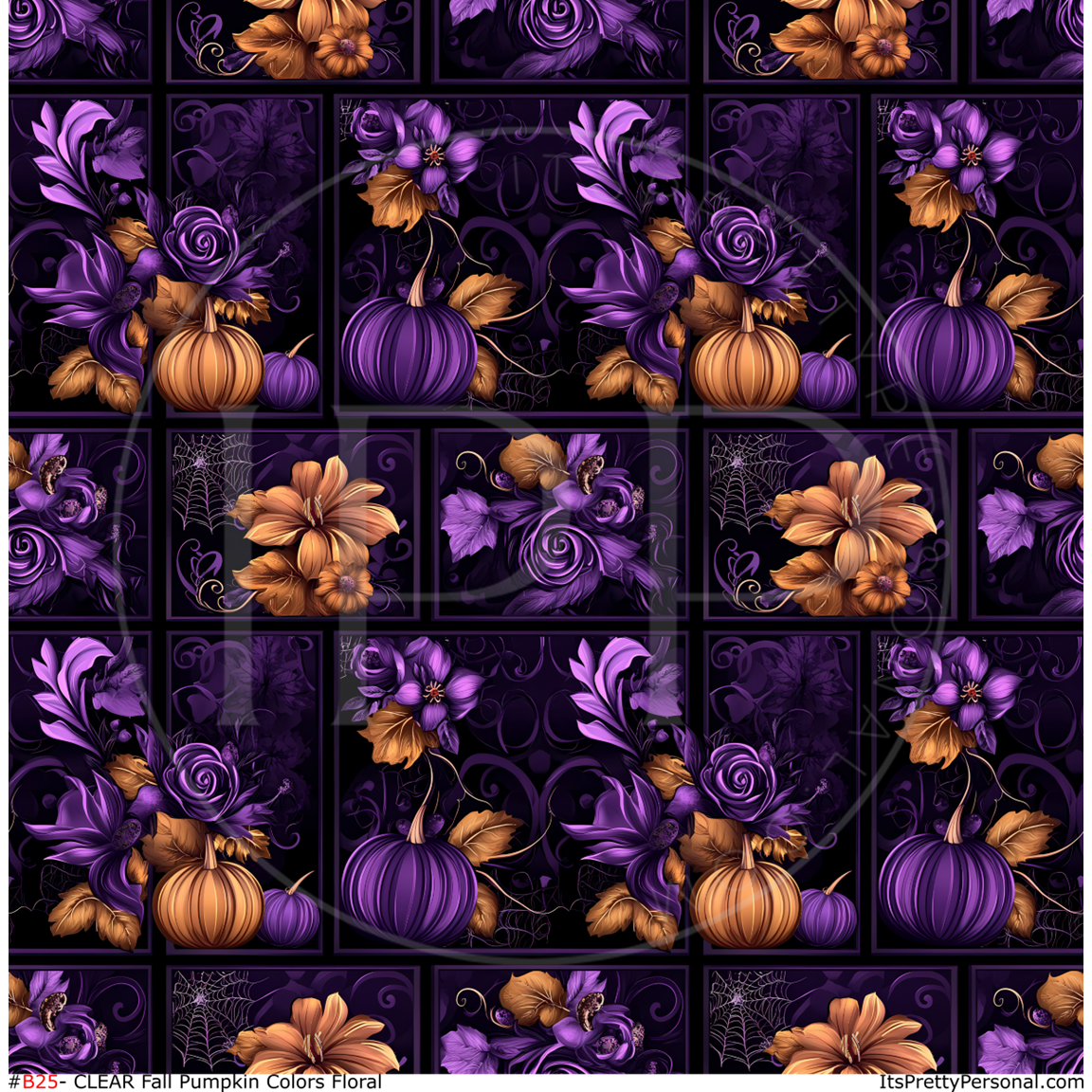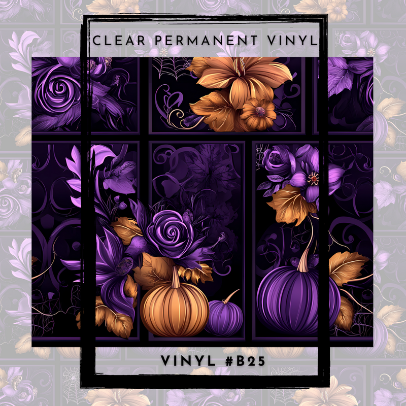 #B25- CLEAR Deep Purple Orange Pumpkins - 12x12 Pattern Vinyl