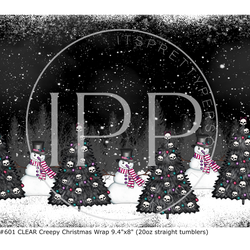 #601 CLEAR 20oz- Creepy Christmas- 9.4" x 8" Pattern Vinyl Wrap