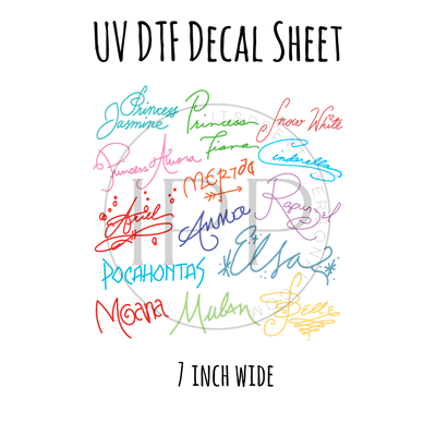 7"x7"- #20- Princess Signatures- UV DTF Decal SHEET