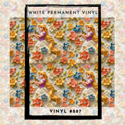 #887-Cute Character- Long Hair Floral Princess 12x12 Pattern Vinyl
