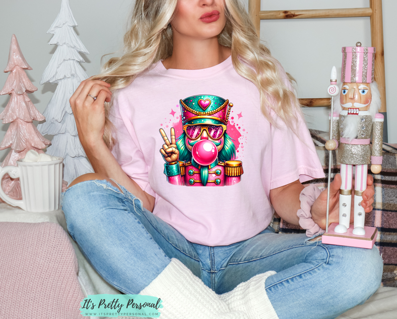 #164 DTF Print- Christmas Pink Bubble Nutcracker