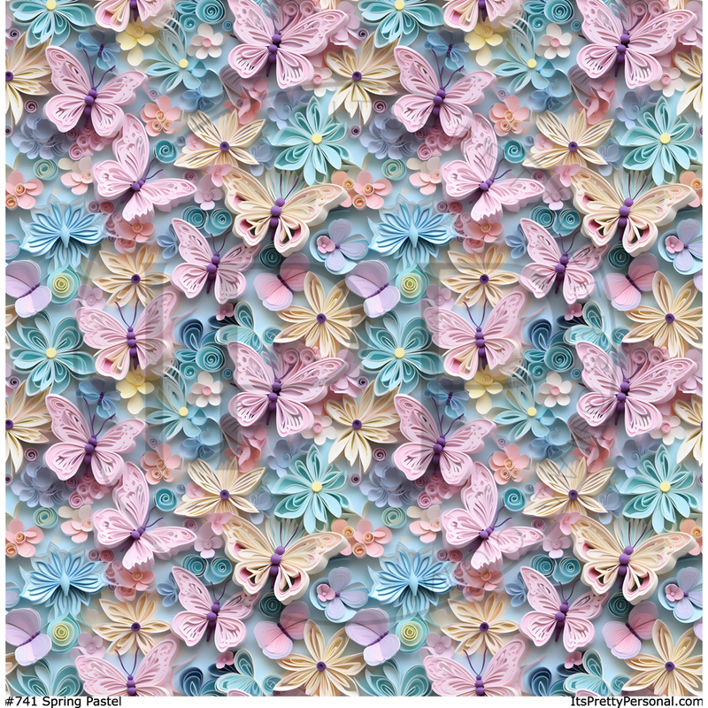 #741-Spring Pastel 3D Flowers Butterflies - 12x12 Pattern Vinyl