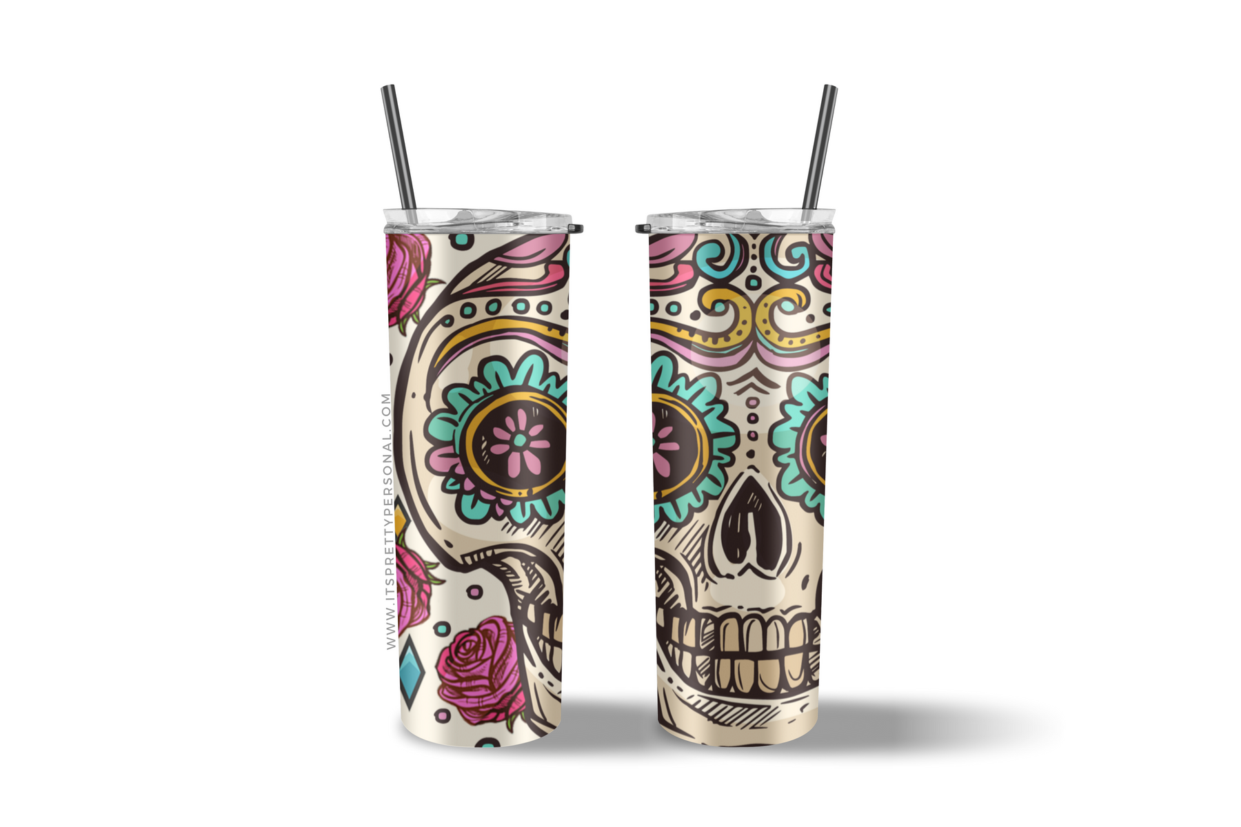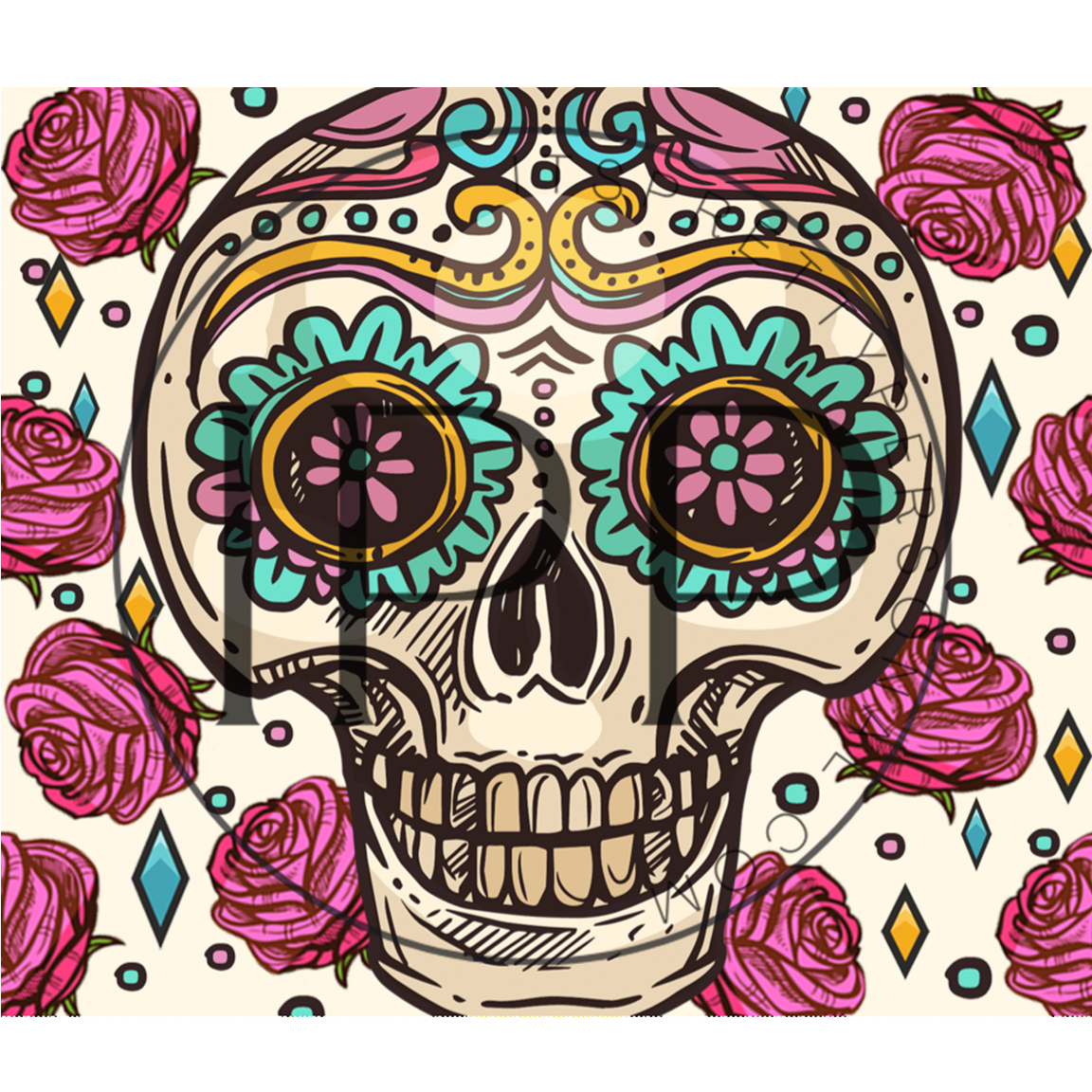 #313 CLEAR Sugar Skull - 20oz Skinny Straight- 9.4" x 8" Pattern Vinyl Wrap