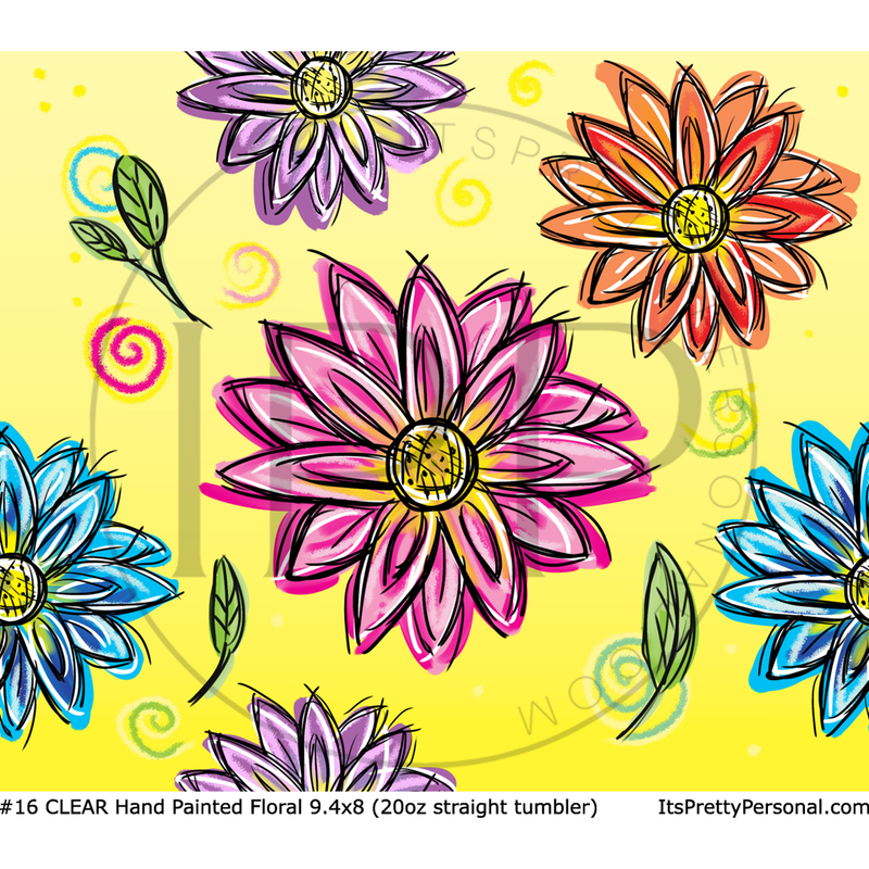 #16 CLEAR- 20oz - Hand Painted Floral 9.4" x 8" Pattern Vinyl Wrap