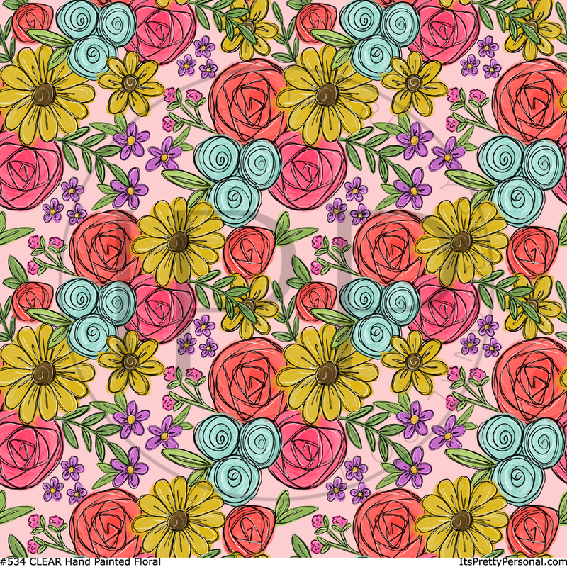 #534 CLEAR Hand Painted Floral 12x12 Pattern Vinyl