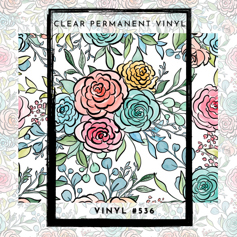 #536 CLEAR Hand Painted Floral 12x12 Pattern Vinyl