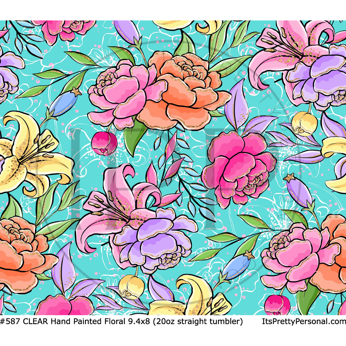 #587 CLEAR- 20oz - Hand Painted Floral 9.4" x 8" Pattern Vinyl Wrap