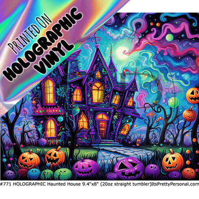 #771 HOLOGRAPHIC- 20oz -Haunted House 9.4" x 8" Pattern Vinyl Wrap